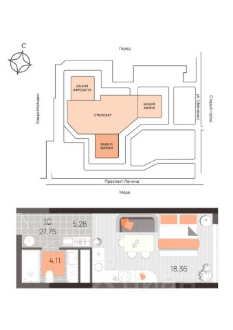 • ✅ Минимальная площадь: 27 м² м² (студии в наличии)
