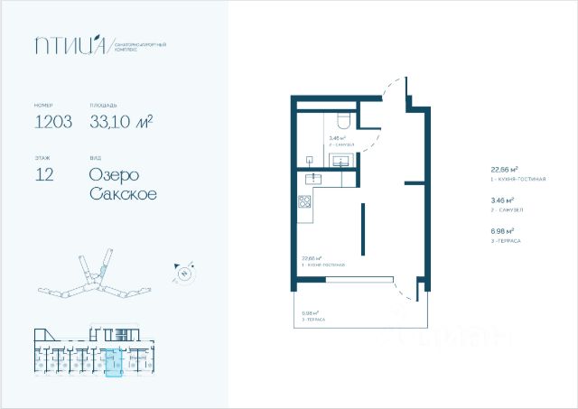 В продаже апартаменты-студия в санаторно-курортном комплексе премиум-класса "ПТИЦА" на берегу моря!