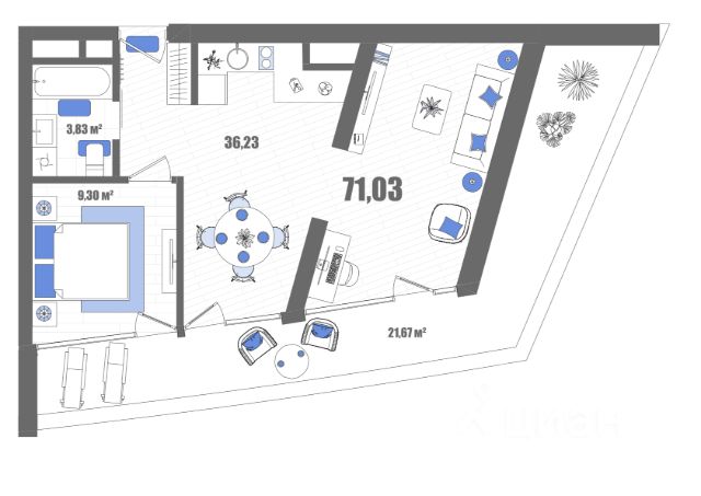 Общая площадь квартиры составляет 30.9 кв. м, кухня — 6.4 кв. м, расположена на 5 этаже пятиэтажного дома. В квартире есть гардеробная. Квартира полностью готова для комфортного проживания: в ней есть кровать, два дивана, столы, кресло-кровать, кондиционер, телевизор, газовая плита, холодильник, микроволновая печь и посуда. Постоянная холодная вода, горячая вода подается от газовой колонки, балкон застеклен. Высота потолков 2.6 м.