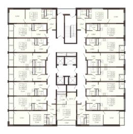Апартаменты различной площади, от студий 26 м2 до просторной трёхкомнатной 87,4 м2, высота потолков 3,13м.