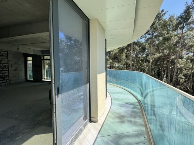 Пентхаус общей площадью 260 м² выполнен в двух уровнях и расположен на самом высоком — 9 этаже корпуса Вилла Чайка. Из окон и с террас открываются захватывающие виды на парк, горы и Чёрное море.