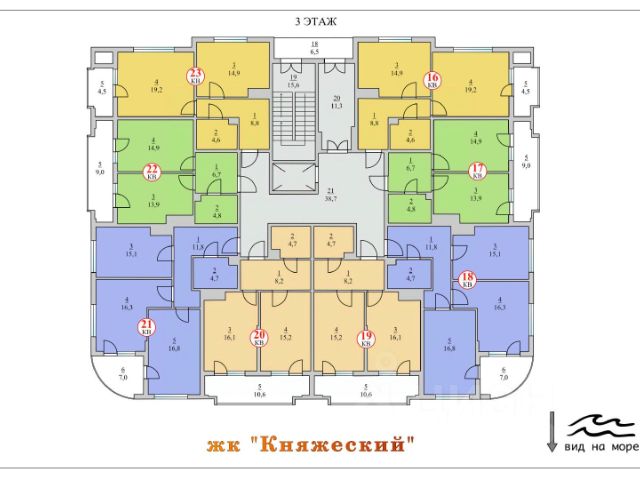 Панорамный вид (около 270 градусов) на море и отличный вид на горно-лесной заповедник будут радовать Вас постоянно. Комплекс "Царский берег" - это апартаменты различной площади: от 63 до 140 кв.м. Высота потолков - 3 метра. На Ваш выбор мы представляем 91 апартамент (со 2 по 14 этажи). На каждом этаже запроектировано всего 7 типовых планировок, которые смогут удовлетворить самый взыскательный вкус. Свободная планировка этих апартаментов позволит Вам организовать пространство в любом стиле. Можно спланировать будуар, итальянскую гостиную, японскую спальню и даже тренажерный зал. Открытые террасы, застекленные лоджии, панорамные окна, остекленные от пола до потолка, - всё это даёт отличную возможность жителям комплекса наслаждаться потрясающими панорамами крымских гор и Чёрного моря даже с нижних этажей дома.