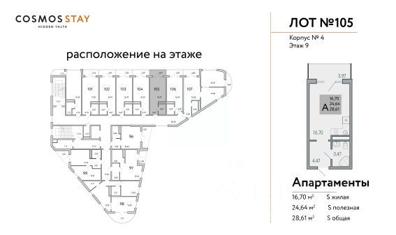 Продаётся студия-апартаменты в строящемся доме (Корпус 1), срок сдачи: I-кв. 2026, общей площадью 72 кв.м., на 3 этаже. Компания "Регион-Инвест Недвижимость" представляет новый комплекс апартаментов "Царский берег" в Крыму. Апарт-отель находится в нескольких десятках метров от знаменитой Царской тропы (Солнечная тропа), по которой император регулярно совершал пешие прогулки. Неподалёку, в Ливадии, располагалась императорская резиденция Романовых, а шикарные дачи российской элиты строились вдоль всего южного берега Крыма. Приобретая апартаменты комплекса "Царский берег", Вы становитесь не только обладателем элитной недвижимости, в Крыму, на берегу Черного моря, но и имеете возможность приобщится к части российской истории. Горы, море, солнце, мягкий климат делают это место идеальным, чтобы связать с ним свою жизнь.
