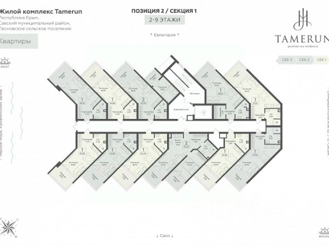 Новый современный апартаментный курортный кластер бизнес-класса на первой береговой линии бальнеологического курорта Саки (рядом с Евпаторией). Это место славится целебными грязями, лечебной солью и минеральной водой, что делает их идеальным местом для восстановления здоровья и релаксации.