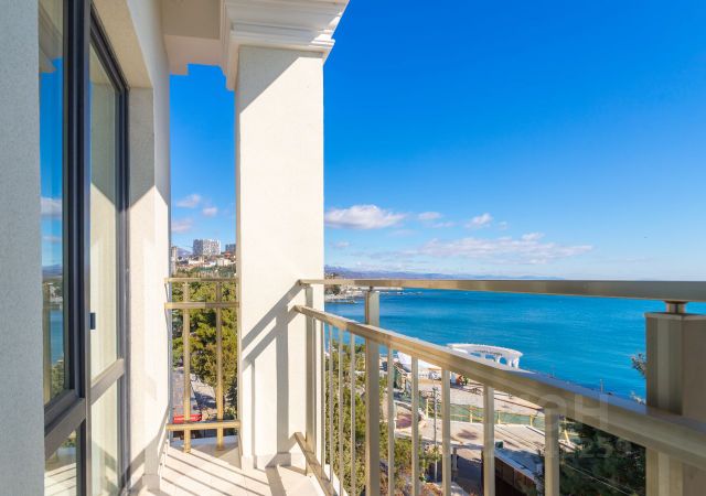 Апартамент с панорамными окнами создает чувство свободы и простора. С балкона открывается потрясающий вид на набережную и бескрайнее Черное море.