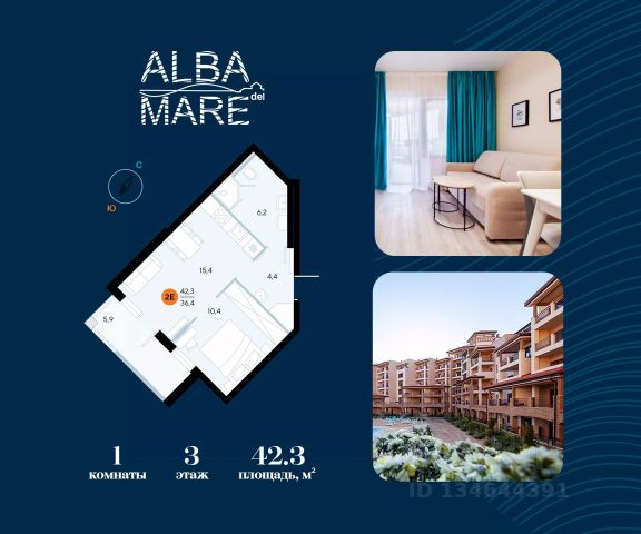 Продаются апартаменты в построенном комплексе. Срок сдачи 4 квартал 2024 года. Alba Del Mare это комплекс апартаментов бизнес-класса с развитой инфраструктурой. Уютные здания переменной этажности строятся в 5 минутах ходьбы (385 метров) от одного из лучших пляжей Евпатории "Super Aqua Beach". Широкая береговая линия, места для активного отдыха и зоны релакса позволят насладиться отдыхом на любой вкус. Архитектурное решение комплекса создает истинное ощущение Средиземноморья и присутствия на дорогом курорте: скатные черепичные крыши, козырьки и навесы-перголы, арочные завершения проемов, цветовая палитра отделки и фасадов, где используются оттенки желтого, охры, терракоты и бежевого. Переменная этажность здания формирует камерность проекта, создавая прекрасные видовые характеристики для каждого апартамента. Просторные террасы с видом на море, патио с собственным выходом к бассейну на первых этажах комплекса, детская и спортивная площадки, ландшафтный дизайн здесь все создано для роскошного отдыха и расслабления. Территория комплекса апартаментов закрыта и находится под круглосуточным видеонаблюдением, что позволит резидентам и гостям чувствовать безопасность проживания. Концепция комплекса: комфорт проживания с первых дней заселения. Реализация апартаментов осуществляется с полной отделкой под ключ. Собственники апартаментов имеют возможность поручить управление недвижимостью профессиональному оператору, что позволит получать стабильный доход. Автономная газовая котельная позволит не зависеть от внешних отключений отопления., парковочные места на закрытой территории комплекса обеспечат безопасность вашему автомобилю, система центрального кондиционирования создаст комфортную температуру в каждом номере. Жилой комплекс реализуется в соответствии с 214 ФЗ.