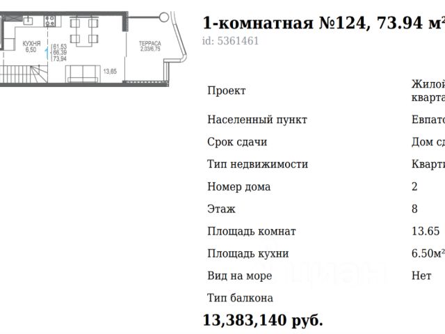 Арт. 123594114 Апартаменты с доходностью 23,8%! Площадь 20,4 м² | 100 м до моря Главные цифры : Площадь: 20,4 м² Полная стоимость: 3 807 600 руб. (190 000 руб./м²) Ваш чистый доход в год: 921 600 руб. (после комиссии оператора 30% и налога 6%) Доходность (ROI): 23,8% годовых Срок окупаемости: 4,2 года ВЫГОДНЕЙШИЕ УСЛОВИЯ ОПЛАТЫ: Рассрочка 0% на весь период строительства Первоначальный взнос всего 30% (1 545 180 руб.) Равные ежемесячные платежи до сдачи объекта Без скрытых комиссий и переплат Возможность досрочного погашения Идеальная локация в Штормовом (всё в шаговой доступности): 100 метров до собственного песчаного пляжа 2 лечебных грязевых озера (для кожи и опорно-двигательного аппарата) Вся инфраструктура: детский сад, школа, поликлиника, магазины Удобная транспортная развязка, 15 мин до Евпатории Преимущества комплекса "Живая Вода Резиденс": Закрытая охраняемая территория Своя терраса в каждом апартаменте Лифты, детская площадка, панорамное остекление Рассрочка 0% (первоначальный взнос от 30%) Окончание строительства: 4 квартал 2026 года Это готовый бизнес под ключ на берегу Чёрного моря. Мы берем на себя управление и аренду, вы получаете стабильный пассивный доход и личную недвижимость на первой линии.