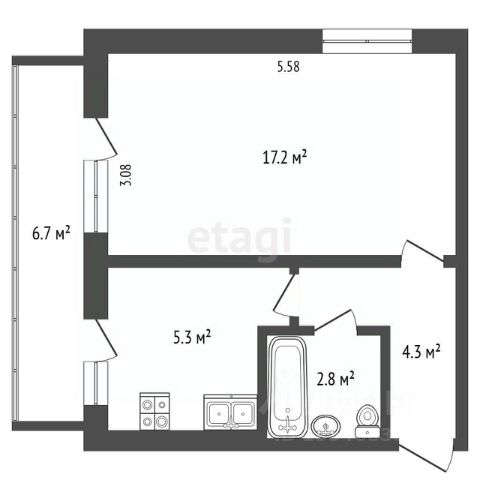 - комнаты изолированные, площадь комнат - 17,2квм и 11,1кв.м