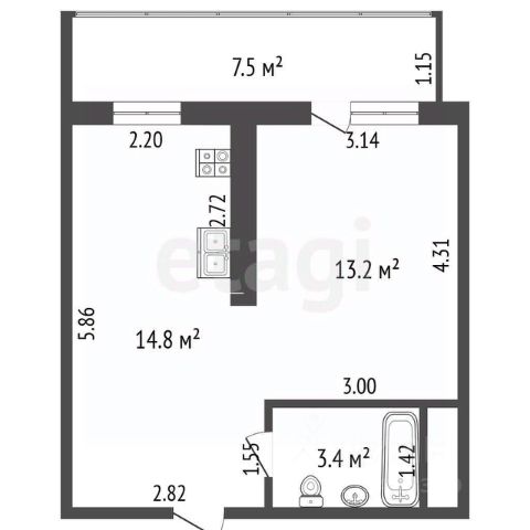 +2 санузла (один с ванной и панорамными окнами, второй с душевой),
