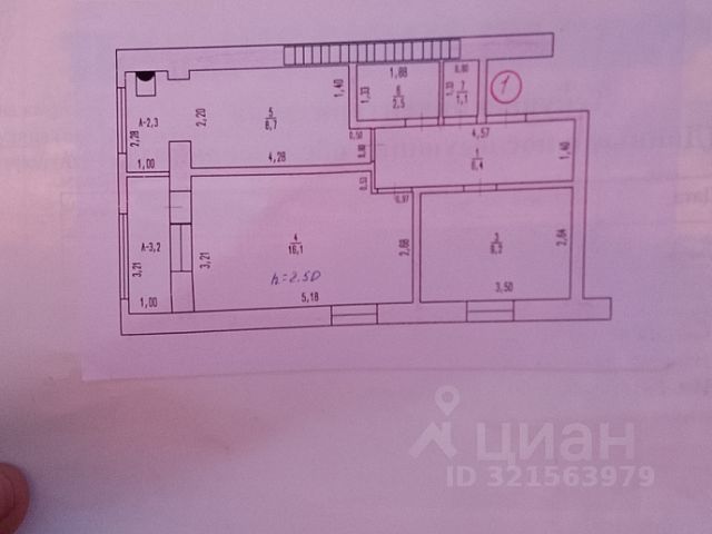 -Высота потолка: 2.6 м