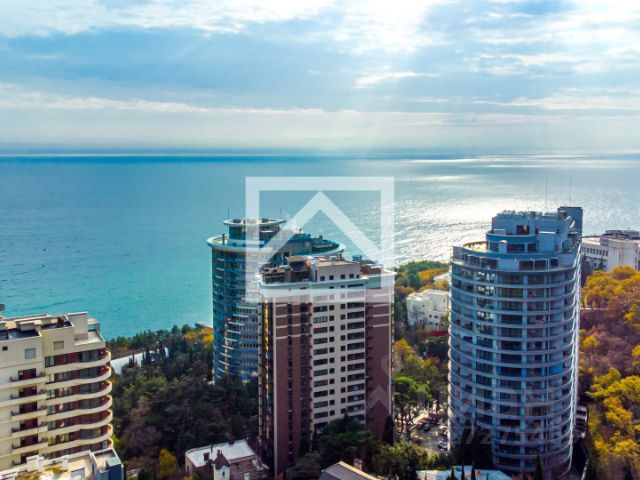 Представьте утро: вы выходите на террасу с чашкой кофе, а перед вами — бескрайнее Чёрное море, сияющее на солнце. Внизу шумит листвой Приморский парк имени Гагарина — 20 гектаров реликтовой зелени, пальмовых аллей и фонтанов. Это не просто квартира. Это — пульс Ялты, её история и статус в одном адресе.
