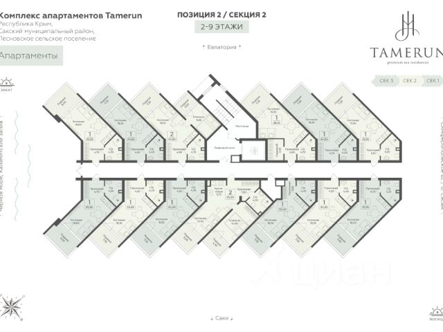 Продается 2-комнатная квартира 47,65 кв.м. на 3 этаже. Тамерун - дом у моря для тех, кто мечтает о тишине, окружении парков и воды. На приватной территории с собственным пляжем расположены видовые апартаменты, бассейны, спа, рестораны и эстетичные сады. Персонализированный сервис здесь исполняет пожелания, создавая атмосферу пятизвездочного отеля у вас дома. Резиденция сочетает преимущества мягкого климата, близость к городам Саки и Евпатория и доступ к целебным источникам. Это пространство вдали от туристического шума идеально для круглогодичного комфортного проживания и здорового образа жизни. Расположение Пешком: - 3 минуты до приватного пляжа у Черного моря; - 15 минут до Ж/Д станции "Техникум"; - 25 минут до пирса у озера Сасык-Сиваш; На автомобиле: - 5 мин. до Симферопольского шоссе; - 10 мин. до города Саки; - 20 мин. до Евпатории; - 45 мин. до аэропорта имени И. К. Айвазовского; - 60 мин. до Ж/Д вокзала Симферополя. Инфраструктура для детей и взрослых - Эксклюзивный клубный пляж; - Виндсерфинг, дайвинг, катание на лодках и другие виды водного спорта; - Спортивный корт для тенниса, футбола и волейбола; - Приватная парковая территория; - Оздоровительный спа-комплекс; - 2 открытых и 1 закрытый бассейны с морской водой; - Банный комплекс с купелями, хамамом, снежной и соляной комнатами; - Развлекательный центр; - Детский клуб с кинотеатром; - Батуты, лабиринты и скалодромы для подростков; - Конференц-зал на 50 человек и переговорные кабинеты; - Бильярдный клуб; - Фитнес-центр с новейшими тренажерами; - Торговая галерея прямо в доме; - Летнее кафе, 3 ресторана и супермаркет; - Гранд-лобби в главном корпусе; - Просторные входные группы с колясочными и велосипедными; - Подземный паркинг на 188 машино-мест с автомойкой; - Наземная гостевая парковка на 259 машино-мест; - Видеонаблюдение, охрана, вход только по пропускам. Живописный ландшафт - Всесезонный сад: зеленый и цветущий двор круглый год; - Более 100 растений в приватном саду; - Амфитеатр на свежем морском воздухе; - Лаунж-зоны и прогулочные дорожки; - Крупнейшее в Крыму соленое розовое озеро Сасык-Сиваш и Сасыкский заказник; - Песчаные пляжи протяженностью 150 метров; - Главная мечеть Евпатории Джума-Джами, Собор Николая Чудотворца, Комплекс Караимских кенас в непосредственной близости. Проект для инвестиций - Федеральный девелопер, входящий в ТОП-20 застройщиков России; - Профессиональный отельный оператор; - Консьерж-сервис 24/7: бронирование, аренда, клининг, доставка; - Для инвесторов полное делегирование обслуживания апартаментов; - Пассивный доход от 1,5 млн руб. в год; - Потенциал роста стоимости 35% в год; - Срок окупаемости при сдаче в аренду 5-6 лет; - Востребованность весь год (на 70% в среднем заселен комплекс)."