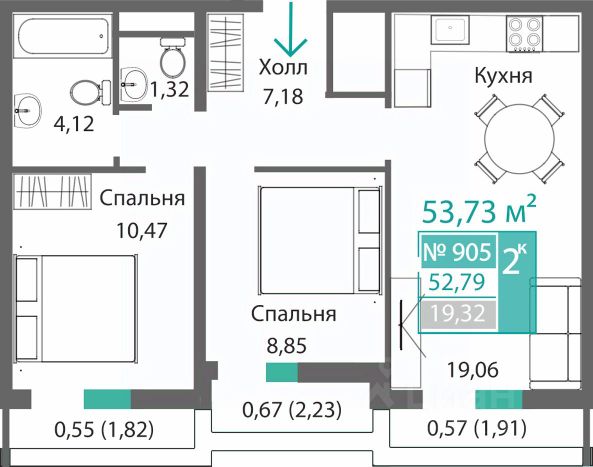Продаётся 2-комнатная квартира в строящемся доме (Этап 1), срок сдачи: I-кв. 2028, общей площадью 52.79 кв.м., на 9 этаже. Новый жилой комплекс от ГК "Монолит" по адресу: Республика Крым, Симферополь, улица Святителя Гурия