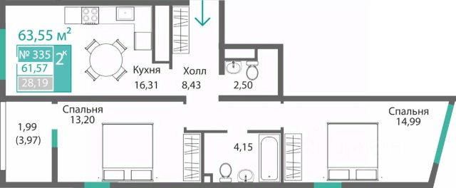 Продаётся 2-комнатная квартира в строящемся доме (Этап 1), срок сдачи: I-кв. 2028, общей площадью 61.57 кв.м., на 7 этаже. Новый жилой комплекс от ГК "Монолит" по адресу: Республика Крым, Симферополь, улица Святителя Гурия