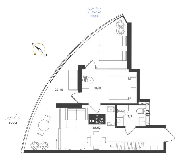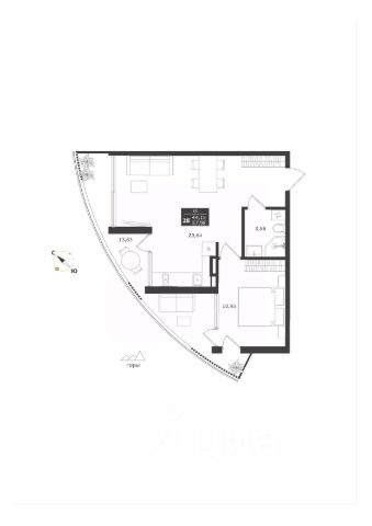 Авторское планировочное решение, грамотно продуманно и максимально функционально, площадь позволяет сделать 2 комнаты, 1 спальню, 1 санузел, 1 просторную террасу с 3 индивидуальными выходами из каждой комнаты, всё это позволяет создать апартамент вашей мечты.