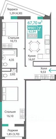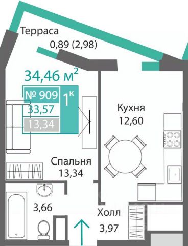 • ✅ Минимальная площадь: 34,5 м² м² (студии в наличии)