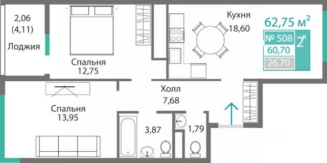- Просторный холл создаст первое приятное впечатление, есть возможность разместить большой шкаф для одежды