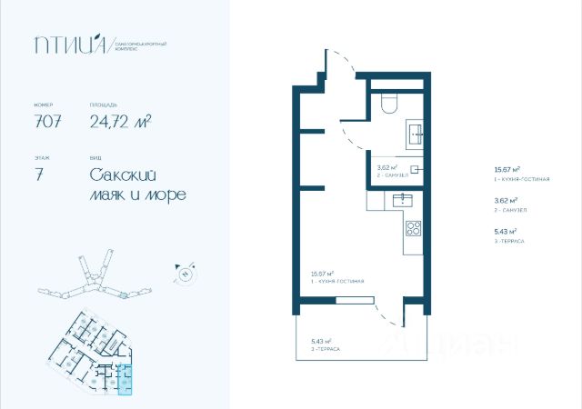 СКК "Птица" — санаторно-курортный комплекс премиум-класса на первой береговой линии Черного моря Локация Комплекс располагается в курортном поселке Саки на западном берегу Крыма 35 минут от аэропорта Симферополя40 минут до трассы "Таврида"47 минут до Ж/Д вокзала3 часа от Крымского моста30 минут до ЕвпаторииСаки курорт с 2500 летней историейРядом с природными и историческими достопримечательностями: мыс Фиолент, мыс Тарханкут, Оленёвка, Балаклавская бухта9 минут до розового озера Сасык-Сиваш4 минут до лечебного Сакского озера О комплексе Общая площадь комплекса: 11 га До оборудованного пляжа: 50 метров Номерной фонд: 1238 лотов Площади апартаментов: от 25 м² до 360 м² Инфраструктура Собственный оборудованный пляж 195 х 200 метровРесторан с панорамным видом на мореКруглогодичный бассейн 700 м²SPA-комплекс площадью 1960 м² с саунами и хамамомСовременный санаторий, площадью 33 387 м²Спортивный комплекс с высококлассным оборудованиемЭксплуатируемая кровляFood-зоны с разнообразными сценариямиДетские развивающие пространстваКоммерческие помещенияКомнаты для сна на мореОранжерея с птицами Санаторно-курортный комплекс Птица стал финалистом премии Рекорды Рынка Недвижимости в номинации "Премьера года Премиум-класса 1"