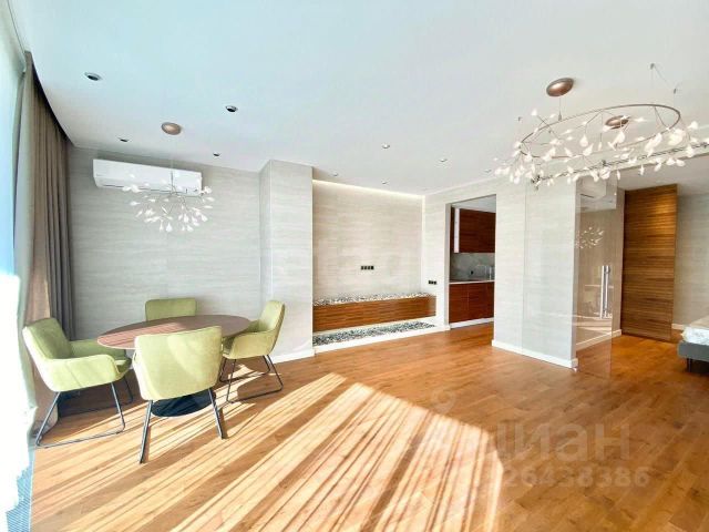 В продаже апартамент общей площадью 131 м², расположеный на 11 этаже рекреационного комплекса Зазеркалье в Приморском парке, рядом с теннисными кортами и благоустроенным пляжем. В квартире выполнен дизайнерский ремонт в современном стиле и очень эффектном интерьере из премиальных дорогостоящих материалов.