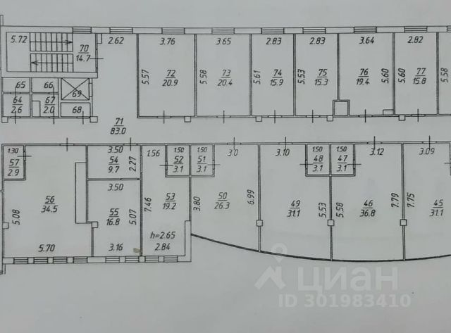 Кабинетная система, на каждом этаже по 2 санузла. Есть лифт.