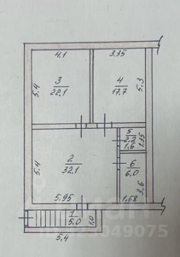 Общая площадь помещения составляет 52 м кв.