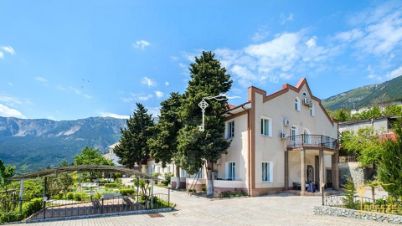 Трёхэтажная гостиница на 25 номеров площадью 750 м² расположена в уникальном экологически благоприятном районе Ялты вблизи заповедного хвойного леса.