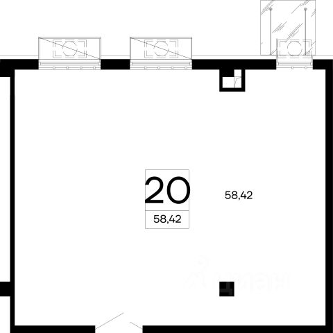 Большое помещение под офис на первом этаже готового жилого дома, общая площадь 120.3 кв.м., без отделки.