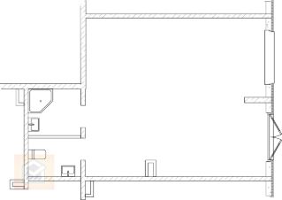 Общая площадь - 76,6 кв.м, состоит из двух залов с отдельными входами 43,3 и 19,5 кв.м, есть подсобное помещение, санузел, раковина.