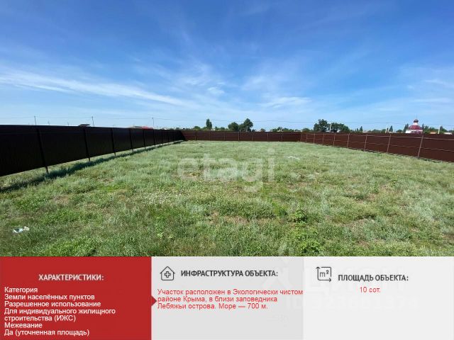 Продается земельный участок в Портовом, площадью 10 соток. Участок правильной прямоугольной формы, к нему подведены газ, имеется централизованное водоснабжение, электричество. Отсыпаются дороги. Вид разрешенного использования-индивидуальное жилищное строительство. Земельный участок расположен вблизи Черного моря, на расстоянии 1 километра от песчаного пляжа. Все документы готовы, участок в собственности. Звоните, отвечу на все вопросы, организую показ. Код пользователя: 143752 Номер в базе: 5689792 Отличный участок 10 соток.