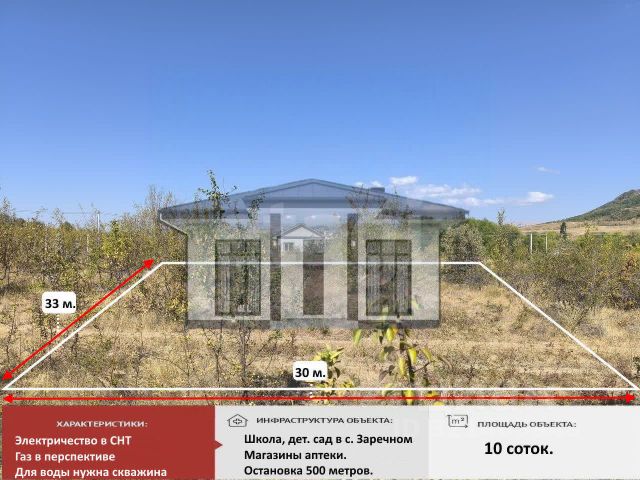 Арт. 71091944 Это надо увидеть! Изумительный вид на Крымские горы и долины! Продам большой участок 10 соток, Симферопольский район, с. Пионерское-3. Под ИЖС. Кадастровый номер 90:12:040901:1061. Находится в одном км от Алуштинской трассы. Вне зоны подтопления. Газ и электричество рядом с участком, вода - возможна скважина. Ведется активная застройка, прокладываются дороги. Красивые виды на Крымские горы, уникальная природа, чистейший воздух. Собственник один. Документы готовы к продаже. Лучшее место для возведения семейного гнездышка. Звоните прямо сейчас! Обеспечим безопасное юридическое сопровождение сделки! Отличный участок 10 соток.
