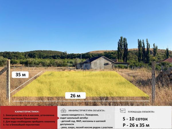Арт. 118262885 Заголовок: Крымская мечта! Участок 10 соток с фундаментом. 20 мин до моря. Текст объявления: Представьте: свой дом в Крыму, где до моря — рукой подать, а вокруг только виноградники, сады и щебет птиц. Это не сказка, а реальное предложение! Участок 10 соток в селе Водное (ул. Ореховая) ждет вас: Идеальная локация: Всего 20 минут до Симферополя и 20 минут до пляжа! Выезд на все побережья Крыма — легко путешествовать. Основа для дома готова: Прочный фундамент 8х8 ждет ваших идей. Постройте дом мечты или обустройте уютный уголок с гаражом и летней кухней. Всё для комфорта: Есть центральная вода, решается вопрос с газом. А еще — свой ракушечник для стройки , установлен септик для канализации. Отдых для души: Рядом лес, отличная рыбалка и невероятная природа. Настоящая крымская идиллия. Не упустите шанс создать свой оазис в сердце Крыма! Участок такого качества и расположения — большая редкость. Звоните, чтобы увидеть свою будущую усадьбу! Отличный участок 10 соток.
