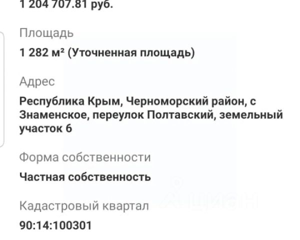 Объект 512. Продается два смежных участка по 12,5 соток в с. Знаменское, по ул. Полтавская, Черноморский район. Расстояние до моря 4 км, до ПГТ Черноморское 20 км. Категория земель: Земли населённых пунктов. Разрешенное использование: Индивидуальное жилищное строительство. Участок в собственности, документы РФ. Коммуникации: электричество есть, вода(нужно бурить скважину), газ в ближайшей перспективе. Участок находится в тихом, перспективном и уютном месте.В соседнем селе находится магазины, почта, школа, Великолепный выбор для проживания и отдыха. Пляж с белым нежным песком, море лазурное, кристально чистое. Отличное место для оздоровления организма и детей. Расстояние до Беляуса 4 км, до ПГТ Черноморское 20 км. Пляж Беляус песчаный пляж на юго-западе Крыма. Сам пляж песчано-ракушечный, протяжностью около 10 км. Он получил негласное прозвище "Крымские Мальдивы" за белый песок и кристально-прозрачную воду с бирюзовым отливом. Белый песок образовался из ракушечной крошки. Живописный вид, тишина этих мест завораживают и умиротворяют. Прекрасное чистейшее море, песок идеально подходят для семейного отдыха. Там неглубокий и плавный заход, безопасно для детей. Иногда приплывают дельфины погонять стайки рыбешек. Отличное тихое место с большим количеством новых домов и мини-гостиниц, отлично подойдет для проживания и отдыха. Практически все гостевые дома и мини-пансионаты с. Знаменское в сезон имеют 100% загрузку.