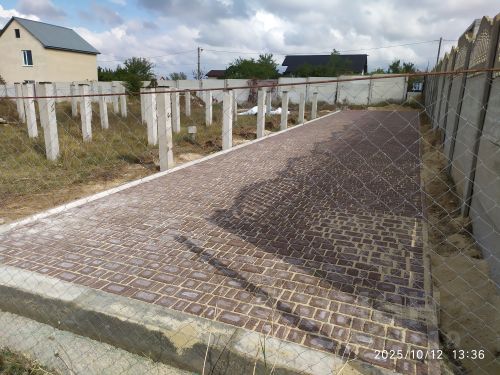 Построена брусчатая площадка на две автомашины, площадь 72 квм.
