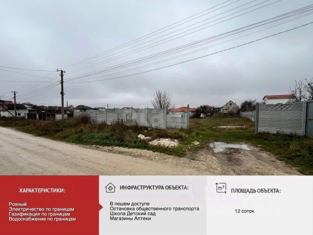 Продаётся участок от собственника. Участок расположен в центре посёлка в 100 проходит асфальтированная дорога. по участку проходят все коммуникации : свет, газ, вода. в пешей доступности магазины, мфц, школа, в посёлке построен новый садик. До Симферополя 7 км, до Алушты 30 км. По документам 11 соток, в конце участка ещё около сотки земли, можно пользоваться или выкупить у сельсовета. При необходимости могу помочь в подключении всех коммуникаций и постройке дома Кадастровый номер 90:12:040102:1807