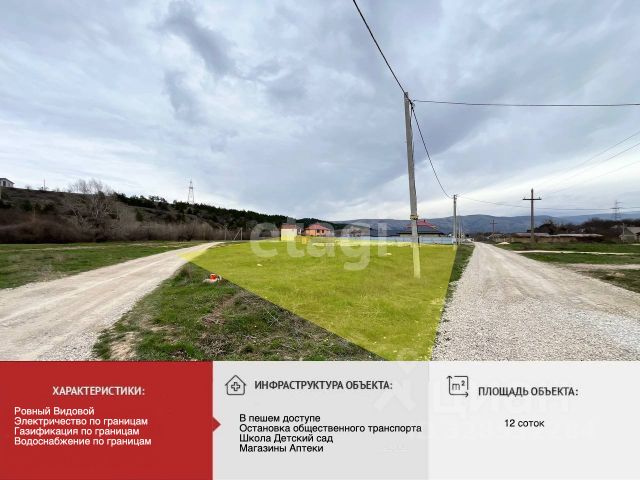 Участок вашей мечты в живописном уголке Крыма! Предлагаем вам, уникальный прямоугольный участок ,площадью 12 соток, расположенный всего в 4 км от Симферополя,с.Пионерское. Этот участок станет идеальным местом для строительства вашего загородного дома или дачи. Вы сможете наслаждаться потрясающими видами на Добровскую долину и величественный Чатыр-Даг, а также дышать свежим воздухом, благодаря близости леса. Участок идеально подходит для тех, кто ценит спокойствие и природу, но не хочет уезжать далеко от городской инфраструктуры. В непосредственной близости от участка развита инфраструктура: магазины, школы и медицинские учреждения находятся всего в нескольких минутах езды. Также удобно расположены остановки общественного транспорта, что обеспечит легкий доступ к Симферополю и другим городам Крыма. Участок полностью готов к сделке: все документы в порядке, и вы сможете начать строительство своей мечты уже в ближайшее время. Мы предлагаем гибкие условия оплаты, включая возможность рассрочки, что делает покупку еще более доступной. С нами вы получите профессиональную консультацию на каждом этапе сделки, а также полное сопровождение. Наша команда экспертов поможет вам сделать правильный выбор и обеспечит надежность сделки. Не упустите шанс приобрести участок в одном из самых красивых мест Крыма! Обращайтесь в компанию "Этажи" и начните новую жизнь в гармонии с природой! Номер объекта :4358042 МЫ ГАРАНТИРУЕМ ФИНАНСОВУЮ БЕЗОПАСНОСТЬ ДЛЯ НАШИХ КЛИЕНТОВ. Полное юридическое сопровождение сделки. Высокий шанс одобрения ипотеки. Звоните, с удовольствием ответим на ваши вопросы! Код пользователя: 142214 Номер в базе: 4358042