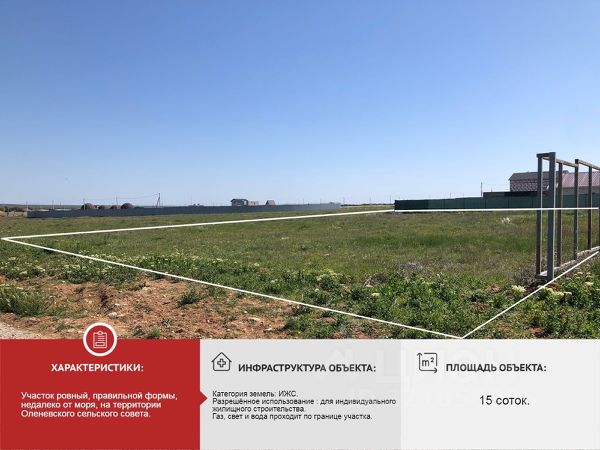 При звонке сообщите нам, пожалуйста, номер 548947 Продается участок 15 соток ИЖС. Черноморский район, с.Калиновка. Участок ровный, прямоугольной формы. Свет подключен, вода центральная, газ по границе участка. До моря и его песчаных пляжей 2,2 км. В этом населенном пункте развита вся инфраструктура: школы, сады. больница, магазины, кафе. все необходимое для комфортного проживания. Кадастровый номер 90:14: 110201:1793. Уникальный участок по уникальной цене. Спешите приобрести кусочек земли у моря в Крыму! Номер объекта: #1/548947/23345 Продается участок 15 соток в Черноморском районе республики Крым.