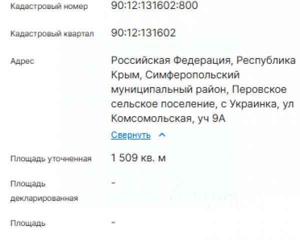 О участке: Коммуникации газ и свет по границе участка. Канализация яма. Водоснабжение колодец (требует расчистки). На участке небольшой уклон. Хорошая земля все зеленое. Есть деревья. Присвоен адрес. Кадастровый номер участка 90:12:131602:800 ИЖС - можно строить дом! На участке стоит домик старой постройки. Можно перестроить или снести. Можно использовать как бытовку пока строиться новый дом. Туалет во дворе. Прекрасный район. Соседи все строятся. Центральное водоснабжение в перспективе. В шаговой доступности магазины и школа, до черты города 3 км. Прекрасная инвестиция. Номер объекта: #1/549508/23345