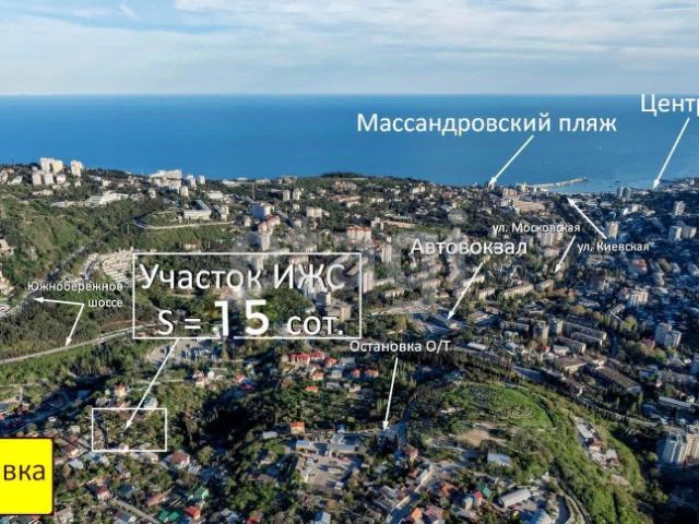 Видoвoй участок 6 cотoк ИЖC, документы PФ, pасполoжeн в г Ялта, мeжду мкp. Baсильевка и Массандра, граничит с заповедной зоной - царское ущелье Уч-кош