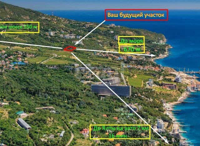 Продается земельный участок 20 соток в Массандре недалеко от дворца Александра третьего под жилую застройку. Участок имеет панорамный вид на море и горы. Асфальтированный удобный заезд, респектабельное соседство. Удобное расположение позволяет в нужный момент оказаться в сердце Ялты и в то же самое время наслаждаться прелестями загородной жизни. _________________________________________________ ____________________________ Расположение: АР Крым, г. Ялта, Массандра, пгт. Восход, ул. Симферопольское шоссе. Площадь: 20 соток Категория земель: земли населенных пунктов Вид разрешенного использования: по документу индивидуальное жилое строительство по ген. плану малоэтажное многоквартирное строительство Право устанавливающий документ: Право зарегистрировано . Росс. свидетельство. Существующие ограничения(обременения права)-не зарегистрировано Кадастровый паспорт земельного участка -есть Межевание -есть Коммуникации: Водоснабжение- есть /Электричество-есть /Канализация- есть /Газ-есть точки подключения находятся на допустимых приемлемых расстояниях от участка. Характерные особенности земельного участка : Вид с участка на море и на горы Близость к морю 1300 м Подъезд-асфальтированная Форма участка - правильная , квадрат Рельеф - ровный, уклон Инфраструктура - развитая (рестораны, банк. отделения, магазины, аквапарки , школы, остановки в пределах 100м-1. 500м) Дополнительное описание: Климат -субтропический , средиземноморского типа . Пляжи -открытые , мелкогалечные с прозрачной бирюзовой водой. Востребовано-место привлекательно для людей желающих развить отельный бизнес. Южный берег Крыма -это центр всей туристической инфраструктуры полуострова-дворцы, имения, замки, парки, гроты, бухты, канатные дороги , безупречные пляжи. Стоимость: 12 500 000 (200 тыс. тыс. $)