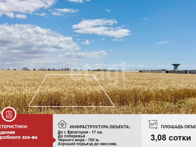 Продается уникальный земельный участок площадью 3 сотки в живописном и перспективном Штормовом, расположенный в Сакском районе Республики Крым. Этот участок в частной собственности имеет юридический статус подсобного хозяйства, что открывает широкие возможности для реализации ваших идей — будь то строительство дачи, обустройство экологичного хозяйства или создание комфортной зоны отдыха. Участок находится на возвышенности, что обеспечивает прекрасный вид и создает комфортный микроклимат. Выделяется удобным расположением рядом с трассой Симферополь-Евпатория-Мирный, что гарантирует легкий доступ к основным транспортным артериям. В непосредственной близости находятся популярные объекты отдыха, такие как дельфинарий (всего 3 км), где проходят занятия дельфинотерапии для детей, и озеро Ойбургское с лечебными грязями (в 1000 метрах), которые имеют уникальные целебные свойства. Соседство с развивающимся поселком Штормовое, находящимся всего в 2 км, и песчаными пляжами "Крымские Мальдивы" в 2,5 км делают данный участок особенно привлекательным для тех, кто ценит сочетание природы и комфорта городской жизни. Для вас также открываются грандиозные перспективы: в 1,5 км от участка планируется строительство нового города "Новая Евпатория", что создает дополнительные возможности для вложения средств в будущее. На участке возможно подключение электричества, а для водоснабжения предусмотрена скважина. Канализация — локальная, что делает участок более автономным. Не упустите возможность стать владельцем этого земельного угодья и воплотить в жизнь свои мечты об идеальном месте на берегу Черного моря. Мы можем провести оперативный онлайн-показ, чтобы вы могли увидеть все преимущества данного участка. Звоните сейчас! При звонке сообщите нам, пожалуйста, номер: Z3864 Отличный участок 3 сотки.