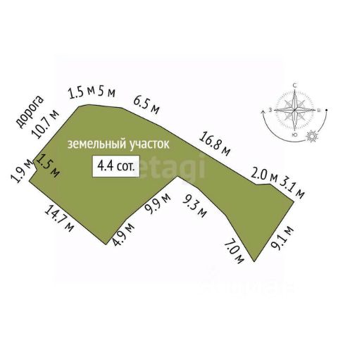 Участок с перепадом высот. Уклон на ЮГ в сторону моря.