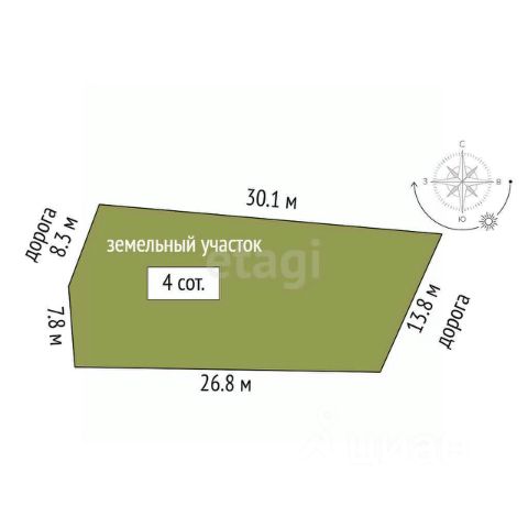 Id:984 Продам участок четыре сотки в экологически чистом районе по улице Облепиховая. Категория земель: земли населённых пунктов. Виды разрешенного использования: ведения садоводства. Участок ровный, имеет правильную прямоугольную форму, сухой коммуникации электричества, водоснабжения проходит по границе участка. Инфраструктура шаговой доступности: автобусные остановки, магазины, аптека. Вблизи находится заправочная станция, большой супермаркет, до центра города 15 минут на автомобиле, до пляжа "Золотые пески" 10 минут на автомобиле. Звоните, показ в удобное для вас время.