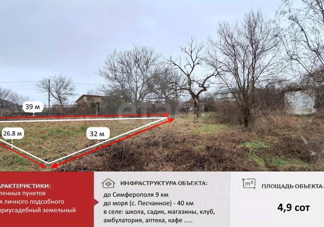 Продаётся великолепный земельный участок в живописном месте в с. Партизанское. Характеристики участка: • Площадь: 4,92 сотки - оптимально подходит для строительства частного дома • Категория земель: земли населённых пунктов • Разрешённое использование: для ведения личного подсобного хозяйства (приусадебный земельный участок) На участке есть старое небольшое строение. Преимущества: • По границе участка проходят коммуникации (электричество, вода, газ — возможность подключения) • Удобное расположение вблизи Симферополя, с быстрым выездом в город • Тихая и зелёная улица, рядом жилые дома и соседи, многие активно строятся • Отличный вариант для строительства дома для постоянного проживания или загородной резиденции Этот участок сочетает в себе комфортное расположение и все условия для реализации Вашего проекта дома мечты. Воплотите мечту с агентством "Этажи"! Звоните! Номер объекта: 10892531 МЫ ГАРАНТИРУЕМ ФИНАНСОВУЮ БЕЗОПАСНОСТЬ ДЛЯ НАШИХ КЛИЕНТОВ. Полное юридическое сопровождение сделки. Высокий шанс одобрения ипотеки. Звоните, с удовольствием ответим на ваши вопросы! Код пользователя: 181552 Номер в базе: 10892531