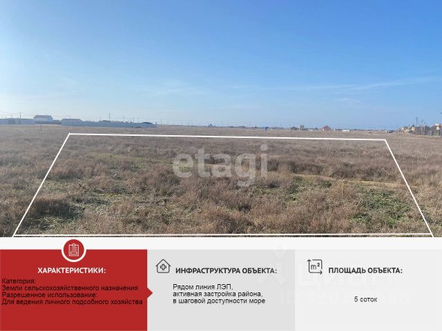 Продаётся участок в коттеджном городке , общей площадью 5 соток. Участок расположен в 700 м от моря , вокруг хорошо развит коттеджный городок , рядом расположены детские площадки , игровые комнаты , кафе, магазины. Имеется рядом трансформаторная подстанция . Рядом населённый пункт. 90:11:240801:2139 При звонке сообщите нам, пожалуйста, номер: Z4140