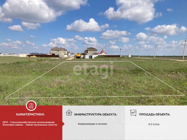 Продается земельный участок площадью 5 соток, расположенный всего в 1 км от границы г. Евпатория. Этот участок идеально подойдет для тех, кому важен комфорт и удобство. Расположенный всего в 7 км от знаменитых Евпаторийских пляжей, он станет отличным местом для отдыха и проведения времени на свежем воздухе. Участок находится в массиве, окруженном садово-дачными кооперативами, что создает уютную и спокойную атмосферу для проживания. Всего 700 метров до села Суворовское и остановки общественного транспорта, что обеспечивает удобное сообщение с городом. На участке разрешено ведение личного подсобного хозяйства, что позволит вам заниматься садоводством, огородничеством или животноводством. Собственность на участок оформляется непосредственно, без членской книжки, что является еще одним преимуществом данного предложения. Также на участке разрешается строительство некапитальных построек, таких как модульные дома или кемпинги, что позволит вам создать свое собственное уютное жилище или место для отдыха. Рядом с участком проходит линия электропередачи, что обеспечивает доступ к электричеству. Это станет удобством для вас и позволит комфортно проживать на участке в любое время года. Этот участок идеально подойдет для семей с детьми, молодежи, родителей или пожилых родственников. Здесь вы сможете создать уютное место для отдыха и проведения времени вдали от городской суеты и шума. Не упустите возможность стать обладателем участка, который сочетает в себе отличное качество и доступную цену. Здесь каждый найдет то, что ищет - комфорт, удобство и возможность создать собственное уникальное пространство. Номер объекта: #1/541967/17283