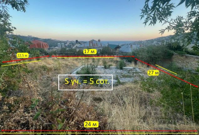 Продаётся участок 5,25 соток в Ялте. Назначение: индивидуальное жилищное строительство. Удачное расположение в районе с развитой инфраструктурой: рядом находятся остановки общественного транспорта, магазины, аптеки, рынок, детский сад, детские и спортивные площадки. Удобный асфальтированный подъезд к самому участку, выезд в центр города и на обводную дорогу. Подключены центральные коммуникации: вода, канализация, электроэнергия. На участке находится жилой дом с адресом, общей площадью 50 кв.м. состоящий из двух комнат, террасы, кухни и санузла. С участка открывается вид на город. Документы РФ, готовы к продаже. Отличный участок 5 соток.