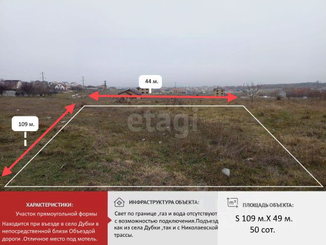 Предлагаем вашему вниманию, уникальный земельный участок, площадью 50 соток, расположенный в живописном и перспективном районе, идеально подходящем для коммерческого использования,с.Дубки. Этот участок имеет правильную прямоугольную форму и выгодное расположение рядом с объездной дорогой, ведущей в село Дубки по Николаевской трассе. Такое местоположение делает его идеальным для строительства мотеля, гостиницы или других объектов коммерческой инфраструктуры. Удобные подъездные пути и развитая инфраструктура в непосредственной близости от участка значительно увеличивают его привлекательность для инвесторов. Село Дубки в ближайшие годы станет частью столицы Крыма, что открывает новые горизонты для бизнеса и инвестиций. Это значит, что ваш проект здесь будет иметь огромный потенциал для роста и развития. Агентство недвижимости "Этажи" предлагает полное юридическое сопровождение сделки, что гарантирует её чистоту и прозрачность. Мы заботимся о том, чтобы каждый наш клиент чувствовал себя уверенно и защищённо на всех этапах покупки. Не упустите возможность сделать выгодную инвестицию в будущее! Стоимость земельных участков в столице Крыма растёт с каждым годом, и сейчас — идеальное время для приобретения. Свяжитесь с нами, и мы с радостью организуем показ участка в удобное для вас время. Ваши мечты о успешном бизнесе могут стать реальностью уже сегодня! Номер объекта: 3989234. МЫ ГАРАНТИРУЕМ ФИНАНСОВУЮ БЕЗОПАСНОСТЬ ДЛЯ НАШИХ КЛИЕНТОВ. Полное юридическое сопровождение сделки. Высокий шанс одобрения ипотеки. Звоните, с удовольствием ответим на ваши вопросы! Код пользователя: 179954 Номер в базе: 3989234 Купить участок 50 соток в Симферопольском районе республики Крым.