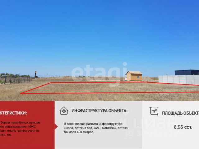 Я Собственник,не агент! ПРОДАМ ПОД ИЖС,Виллу,Коттедж,или можно построить свою миниГОСТИНИЦУ!!! 15 Сентября 2023 дали свет 15 кВт! 2 Щита на участке, в сумме 30 кВт. ЕСТЬ ГАЗ!!! Ввод газа при условии регистрации построенного дома! Своя скважина с пресной артезианской водой на 24 метра!!! Пробурена 19 августа 2023. Дебит 10 кубов в сутки! Качай,поливай,строй. Вода вкуснючая,ледяная,дебет с 18 метров. Могу продать смежный участок 7соток. Хватит для гостиницы или серьезного гостевого дома! Напротив моего участка сосед уже построил дом и и заключил ДОГОВОР на подключение газа!живет постоянно. Присвоен Адрес . Третий Курортный проезд дом18.(620 кадастр имеет адрес дом 16) Для строительства и эксплуатации индивидуального жилого дома! Реальный ИЖС-не путать с садовой или огородной землей или с землями сельхозназначения! 8 Апреля 2022 выдан ГПЗУ-ограничений нет! Выполнена ТОПОСЬЕМКА.ГПЗУ. Полное пятно застройки! Номер по кадастру 90:14:110501:619. ПРЯМОУГОЛЬНЫЙ . Дорога грунтовая- щебеночная. Асфальт почти до участка. До самой Оленевки идет мощное Новое Черноморское шоссе. До Моря 600м. До Лимана 200м. 160 км от Аэропорта Симферополя! 200 км от Севастополя! Мои соседи справа и слева построили дома и гостевые Виллы. Спрос в лений период на жилье просто бешенный! Оленевка включили в Федеральную целевую программу,проведены газ,дороги -лучшие в Крыму,поселок развивается с космической скоростью. Вложено 3 миллиарда и в период до 2023 года выделены еще 27! Правительство Крыма делает Оленевку Курортом номер 1 и создает первый в Крыму туристический кластер. 24.01.2024 в селе Оленевка Черноморского района Республики Крым завершено строительство биологических очистных сооружений с системой разводящих коллекторов мощностью 798 м3/сутки, в том числе разводящих сетей канализации общей протяженностью 35,7 км сообщило республиканское министерство строительства и архитектуры. Стоимость строительства составила 724 млн. руб. Проект реализован в рамках государственной программы Социально-экономическое развитие Республики Крым и г. Севастополя. Проектную документацию разработало АО РТ-ЭКОС (г. Москва). В проекте заложено использование сооружений заводского изготовления станции биологической очистки сточных вод производительностью 800 м3/сут., блочно-модульного здания лаборатории, блочно-модульного здания КПП, подземного железобетонного резервуара-усреднителя, аккумулирующего резервуара объемом 40 м3, резервуара очищенной воды объемом 100 м3, резервуаров пожарного запаса воды и внеплощадочных канализационных насосных станций. Оформление Сбербанк,нотариат,или МФЦ в любом городе России. Торопитесь,поселок застраивается прямо на глазах.