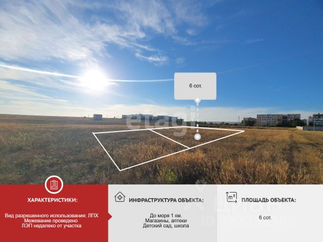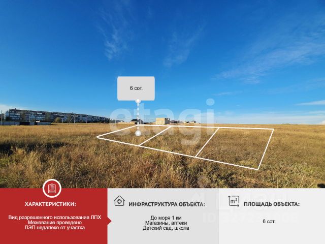 Продается участок земли в живописном Крыму! *Описание:* Предлагаем вашему вниманию прекрасный участок земли на берегу Черного моря в одном из самых живописных уголков Крыма. Площадь участка составляет 6 соток, идеально подходит для строительства загородного дома, дачи или инвестиционного проекта. Возможно прободение нескольких участков в одной локации; Со строительным подрядом и без подряда. *Условия:* - Участок расположен в тихом районе, окруженном зелеными холмами и сосновыми лесами. - Все коммуникации (электричество, вода, газ) в непосредственной близости. - Асфальтированный подъезд к участку. - Возможность получения разрешения на строительство. *Преимущества:* - Уникальное месторасположение: всего в 5 минутах от моря и популярных пляжей. - Развита инфраструктура: магазины, кафе, школы и медицинские учреждения в шаговой доступности. - Отличные условия для отдыха и проживания круглый год. *Цена:* от 85 000 рублей за стоку, при приобретении от 12 соток действуют специальные условия. *Контакты:* Для получения дополнительной информации и организации просмотра, пожалуйста, звоните по телефону Не упустите возможность стать владельцем участка в одном из самых красивых мест России! Купить участок 6 соток в городском округе Евпатории республики Крым.