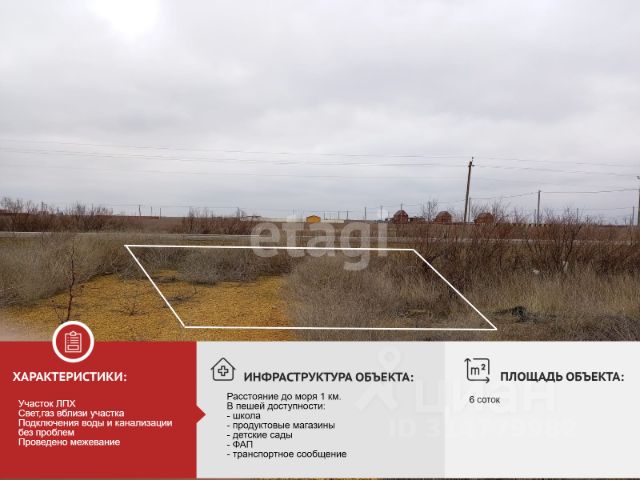 Продается участок 90:10:040101:3875 в самом центре села Ботаническое Раздольненского района, Республики Крым. Село большое и развитое. • Территория земельного участка 6 соток ИЖС, участок отмежеван, присвоен адрес, есть справка ГПЗУ. *Размеры ширина 22 , глубина 27 • Газ по границе, возможно подключение, центральный водопровод, электричество по границе. ИНФРАСТРУКТУРА: • в селе расположена школа, обновленный детский сад, ФАБ, несколько продуктовых магазинов, хоз-товары, спортивные площадки для детей и взрослых, валдберис, церковь. • в пгт Раздольное, которое расположено на расстоянии 5 км от поселка, расположены супермаркеты, магазины, рынок, автозаправки, центральная больница. • 12 км от дома расположены песочные пляжи Черного моря; • Рыбалка 8км, расположено озеро Камышное, где всегда можно получить удовольствие от ловли рыбы на удочку. • Расстояние до города Евпатории - 80 км., до города Симферополь - 136 км. Возможна дистанционная сделка. Рассмотрим семейную, обычную ипотеку. Номер объекта: #1/545893/23345